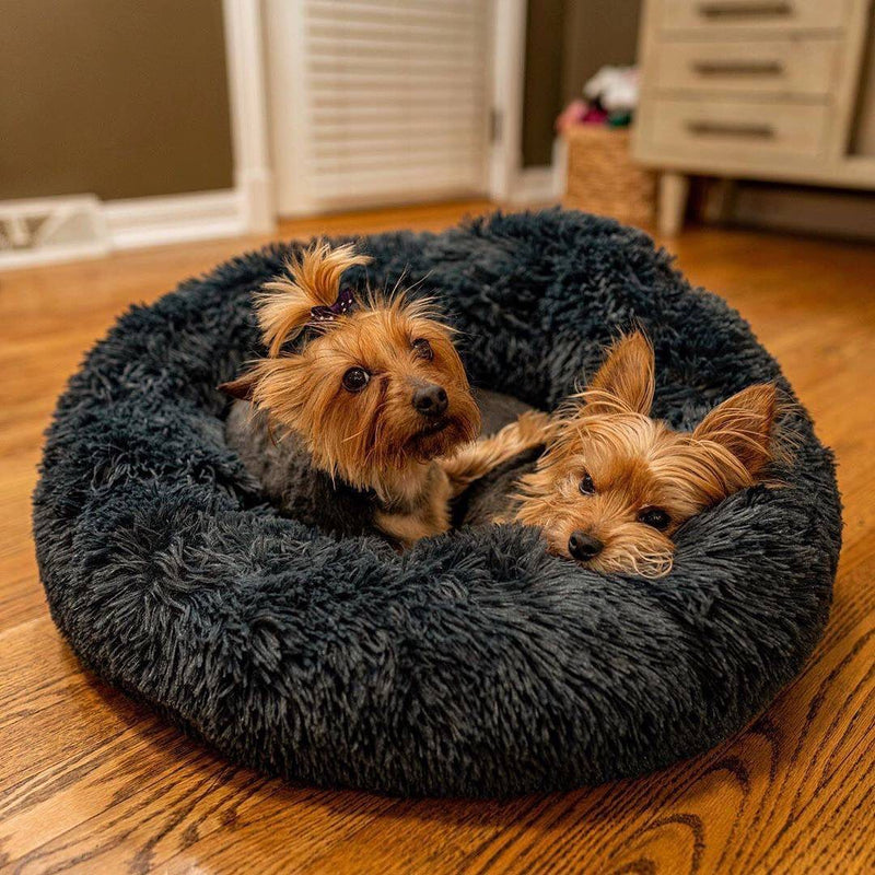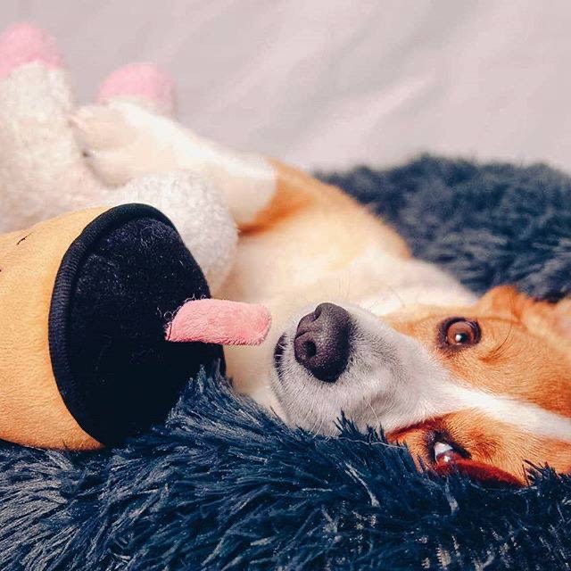"We got this fluffy bed for kaia from @pup.show ! She loved it upon opening -- it's super soft and it fits her long body PLUS she likes to pretend it's a toy."